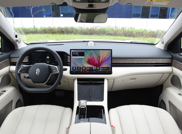 内饰方面,问界M7采用了2+2+2的六座布局,整体设计延续了问界M5的极简风格,搭配大尺寸的中控屏、樱桃木纹饰板以及隐藏式出风口等设计元素,整体氛围既居家又商务。